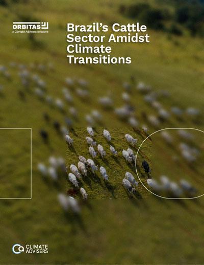 The cover of a climate report titled "Brazil's Cattle Sector Amidsst Climate Transitions."