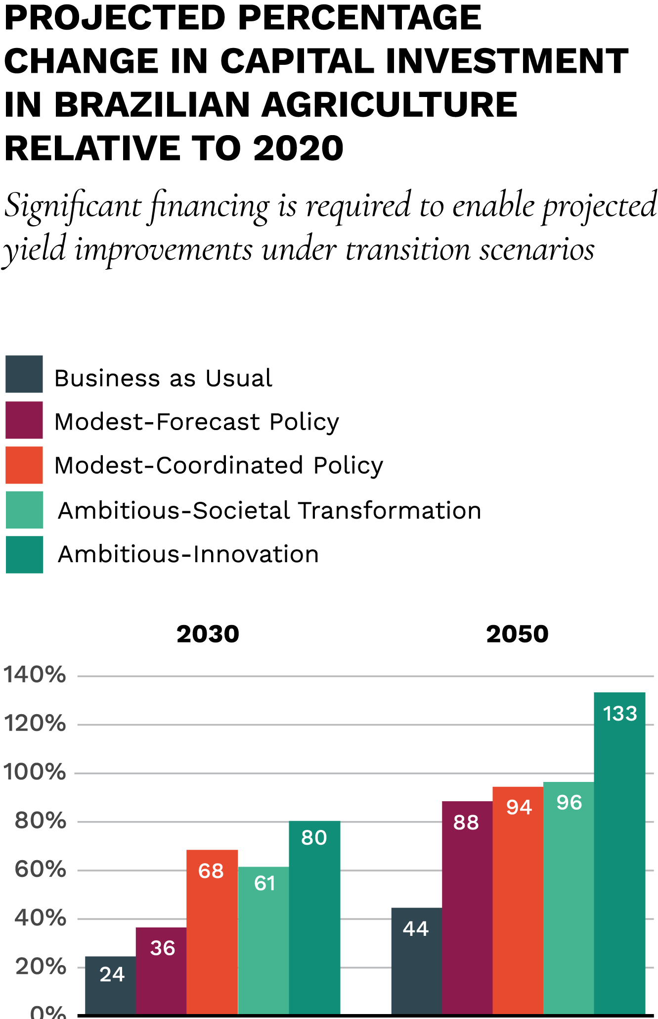 Possible increase in capital investment in Brazilian agriculture by 2050, driven by financing of deforestation-free and low-emission products under climate transitions — a potential USD 157 billion opportunity
