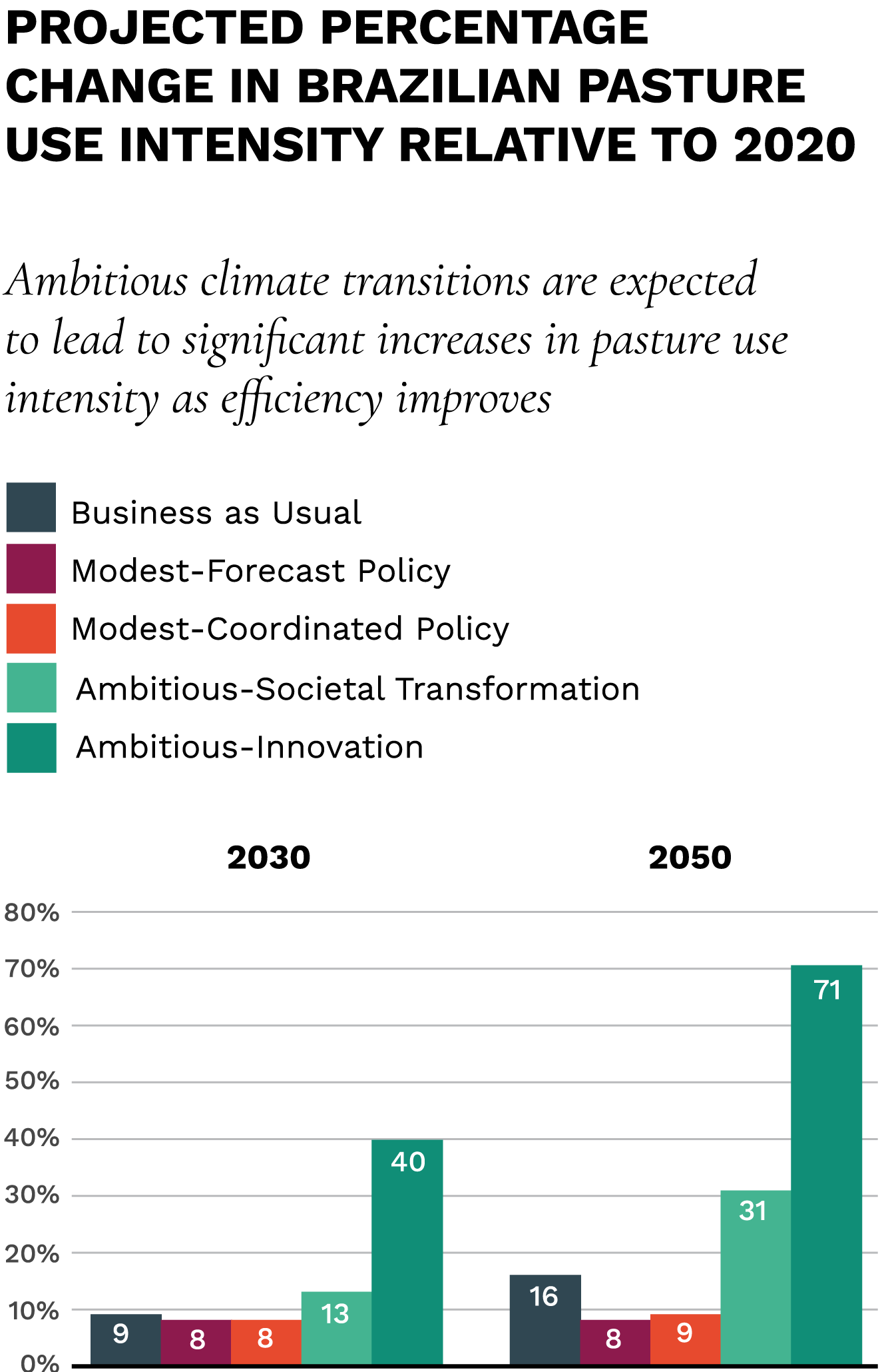 Possible decrease in available pastureland in Brazil compared to 2020 levels, an area larger than the size of Afghanistan.