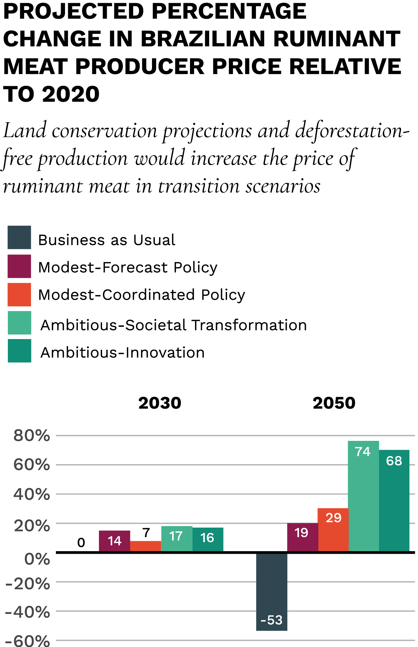 Possible decline in Brazilian beef production by 2050 compared to 2020 levels.